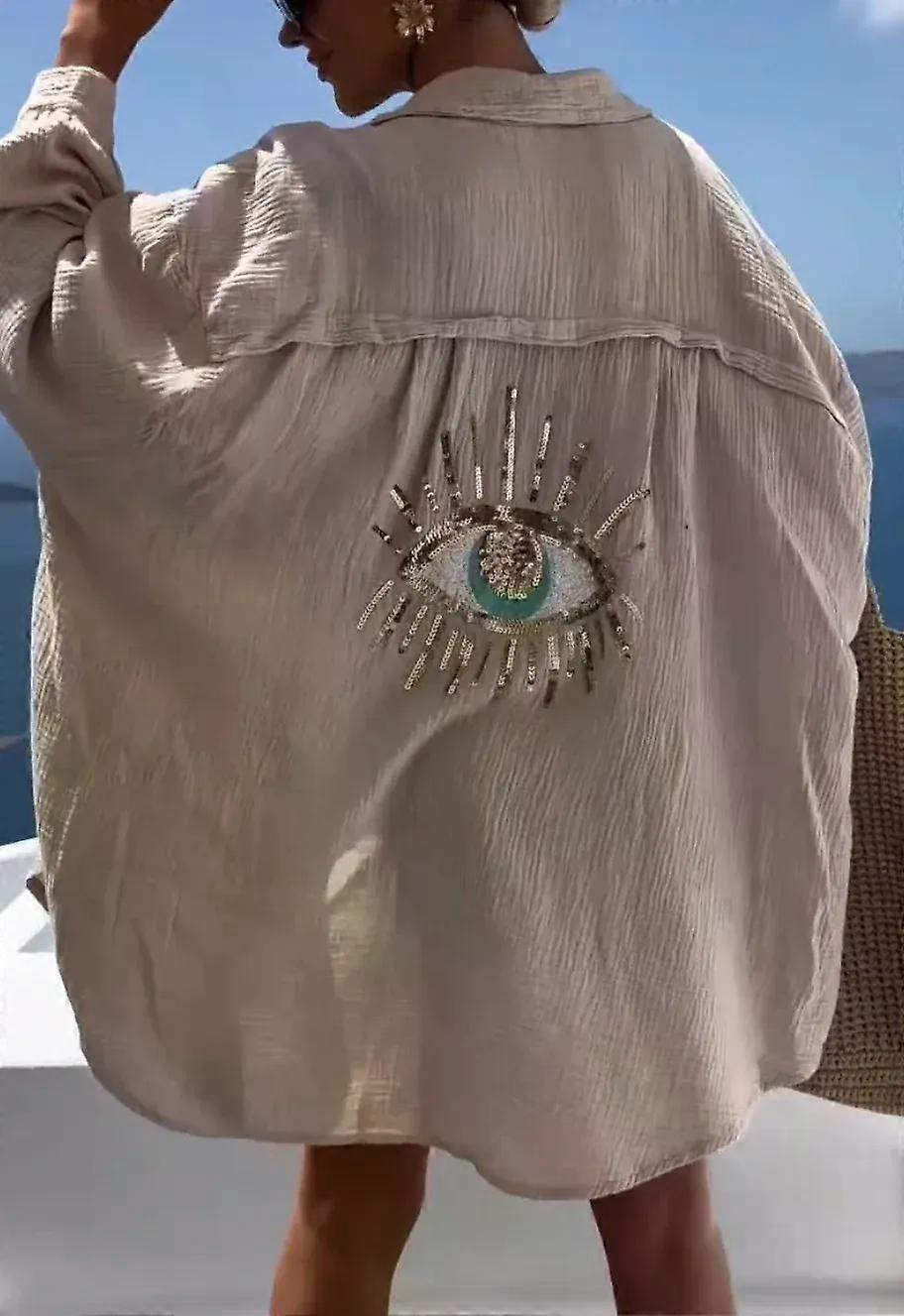 Spring Oversize Women Shirt White Print Turn-down Collar Long Sleeve Loose Blouses Female Casual Trendy Beach Lday Clothes