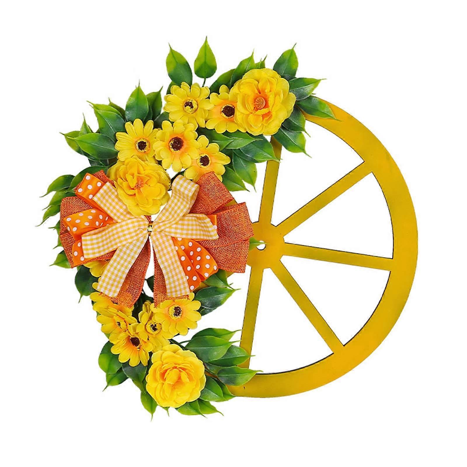 Spring Front Door Wreath Wooden Wheel Welcome Sign for Front Porch Versatile