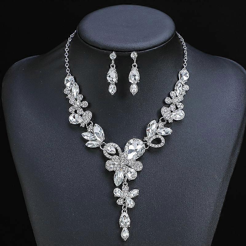 Spring Vintage Necklace Earrings Two-piece Set Flower Crystal Double-layer Flower