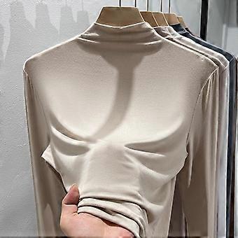אביב וסתיו חולצה תחתונה לנשים חולצה פנימית חצי צווארון גבוה לבוש שרוול ארוך למעלה