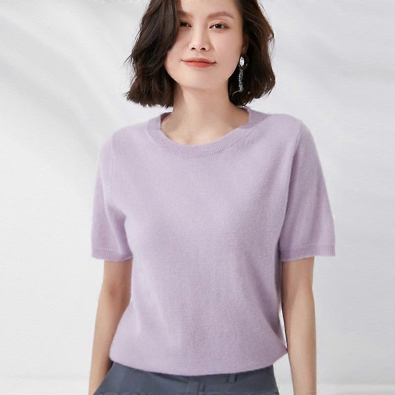 Spring and Autumn Women's T-shirt Knit Shirt Short-sleeved Round Neck Pullover Knitted Bottoming Shirt Half-sleeved Sweater