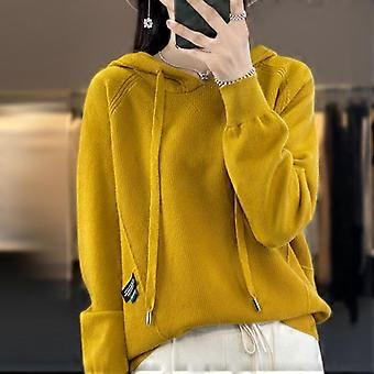 Spring and Autumn Women's Sweatshirt Hooded Knit Sweatshirt Women with Hooded Sweatshirt Loose and Thin Casual Cinnamon Needle Sweater Coat