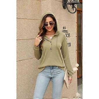אביב וסתיו סווטשירט עם ברדס לנשים עניבת וופל עם ברדס עם שרוול ארוך למעלה
