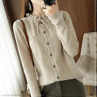 Spring And Autumn 100% Pure Wool And Cashmere Sweater Women's Foreign Style Fungus Collar Knitted Loose Elegant Fashion Cardigan