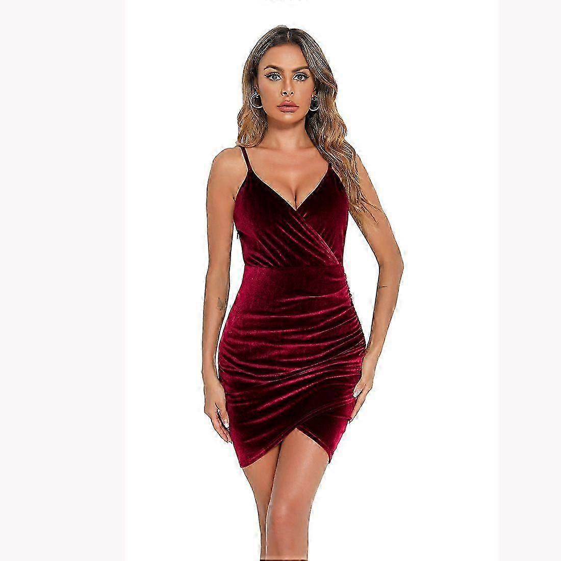 Spring And Summer V-neck Slim Pleated Evening Dress Suspender Skirt Irregular Dress