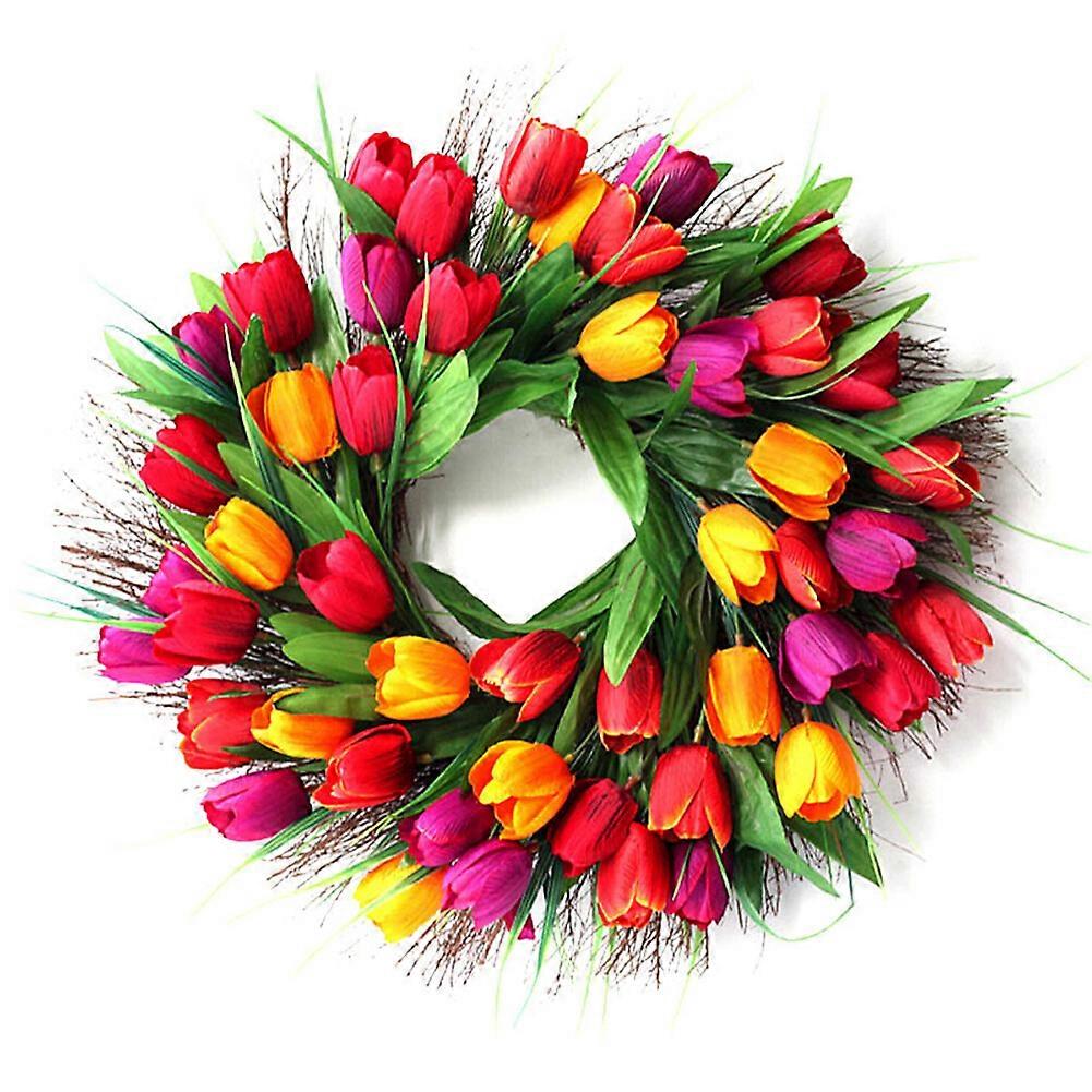 Spring Artificial Tulip Front Door Wreath Home Decor Window Wall Party Wedding Hanging Decor;Spring Artificial Tulip Front Door Wreath Window Wall Wed
