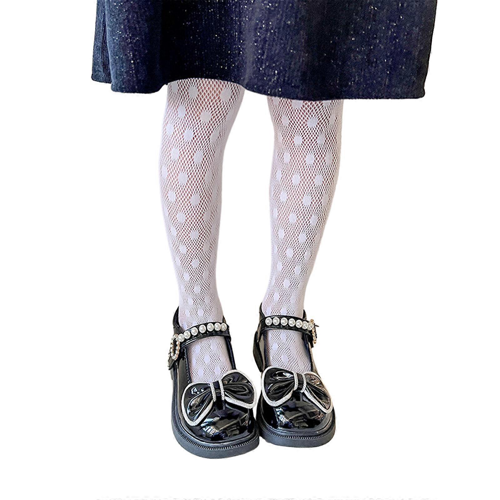 Spring Summer Thin Tights Girls Hollowed Lace Leggings Breathable Mesh Pantyhose Princess Long Socks for 0-13T Children White S