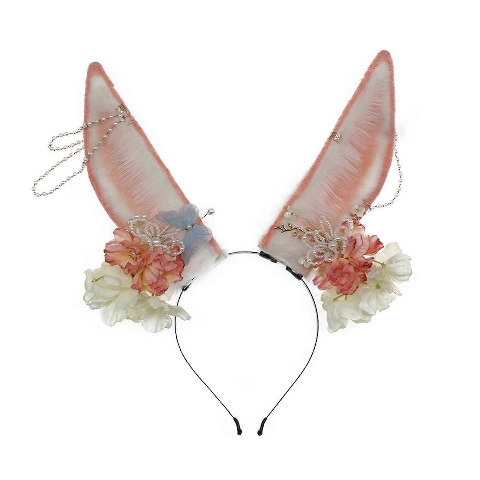 Spring Summer Easter Rabbit Ear Shape Hair Hoop with Pearl Decors Hair Holder Cosplay Party Headwear for Teen Adult Pink