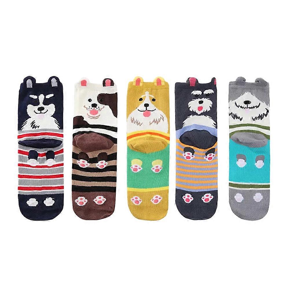 Spring Summer Cartoon Puppy Tube Socks 5Set Ladies Socks Daily Wear Soft