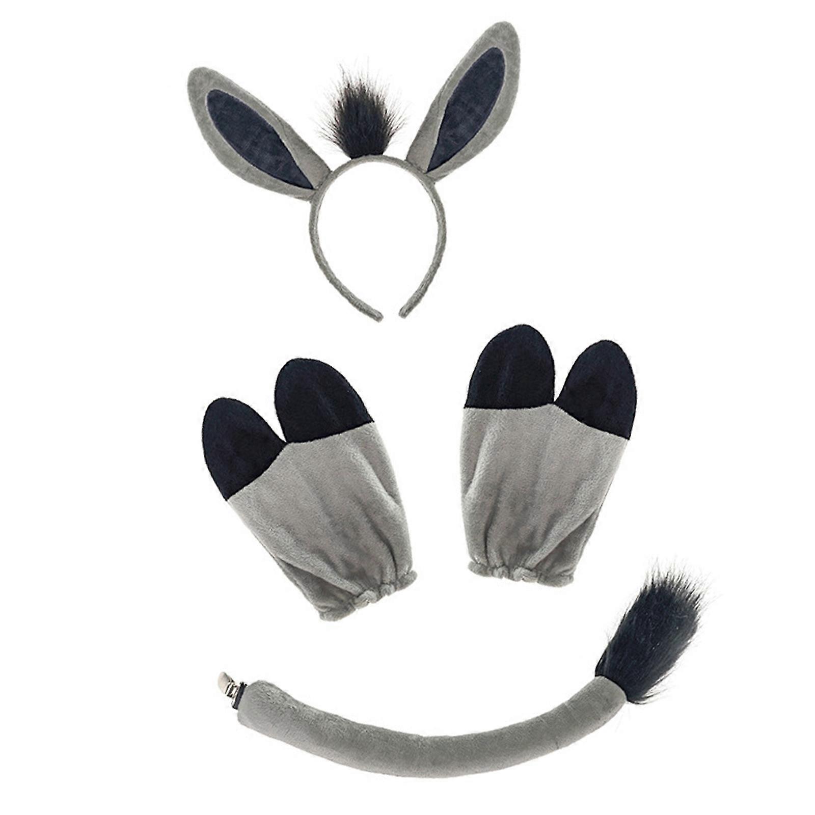 Lightweight Donkey Character Accessories Complete Ears Tail Hoof Set Adjustable Family Costume Fun Gray