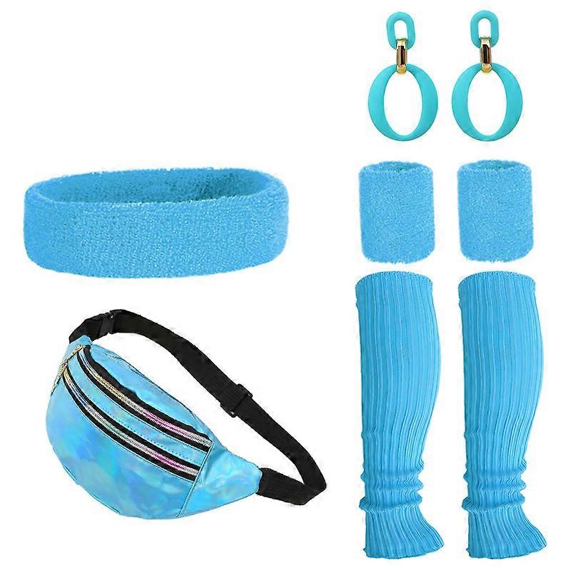 Women's period clothing accessories holographic fanny pack knitted neon leg warmers headband wristband earrings accessory set