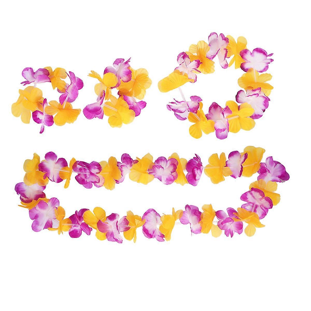 Hawaiian Party Accessories 3 Set Colorful Dual-color Flower Garland For Wristwear Decor Supplies 12 Pcs