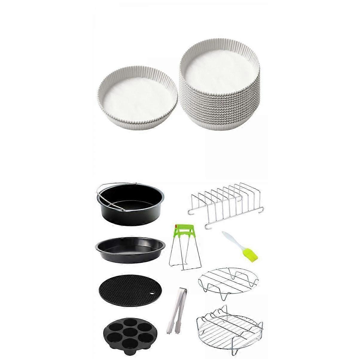 10x fryer Accessories Cake Basket Rack & 50Pcs Paper Liners