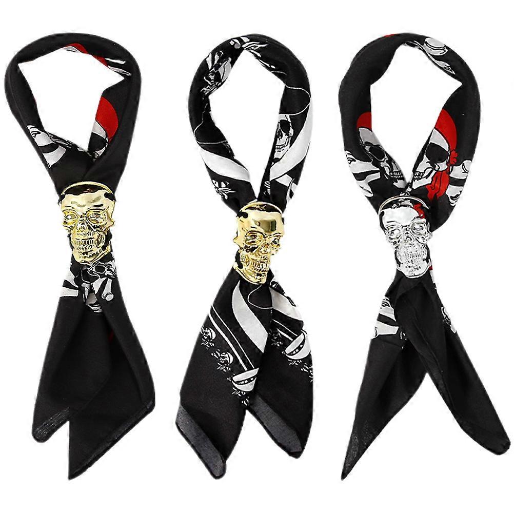 Halloween Props Neckerchief For Cosplay Red With Silver Skull 54x54cm Skull Design 3Pcs