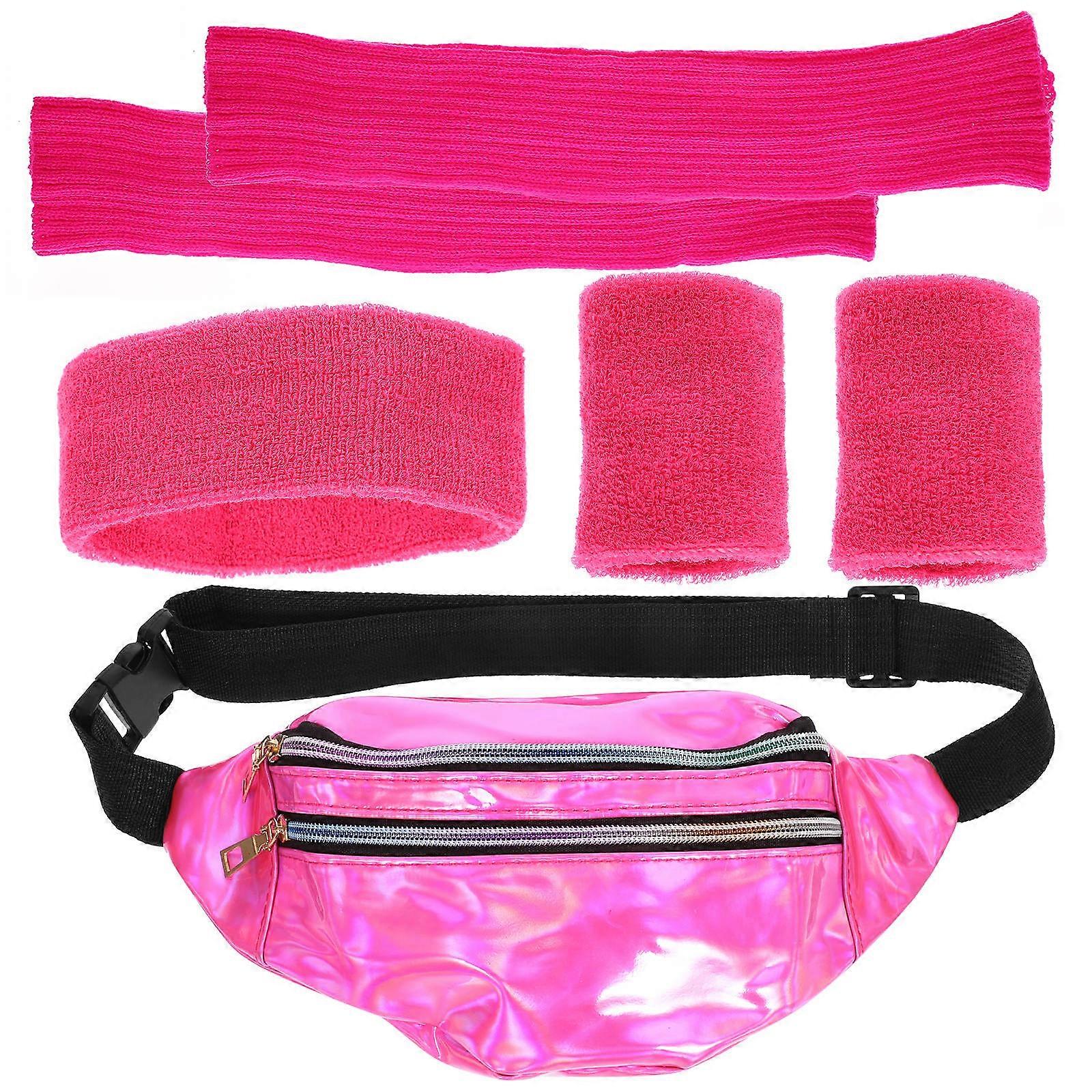 Sports Accessories For Women With 80s Retro Style Featuring Leg Warmers Wrist Cuff And Headband Set In Rosy Color 2 Sets