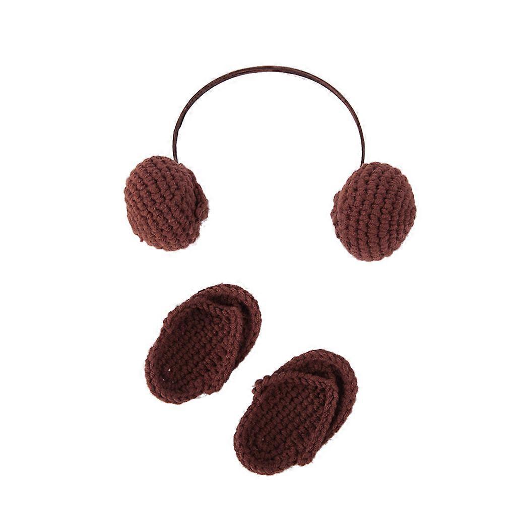 Newborn Photography Props Slippers Set with Headset 5 Colors Hand Crochet Knitted Headphone Slippers Set Coffee