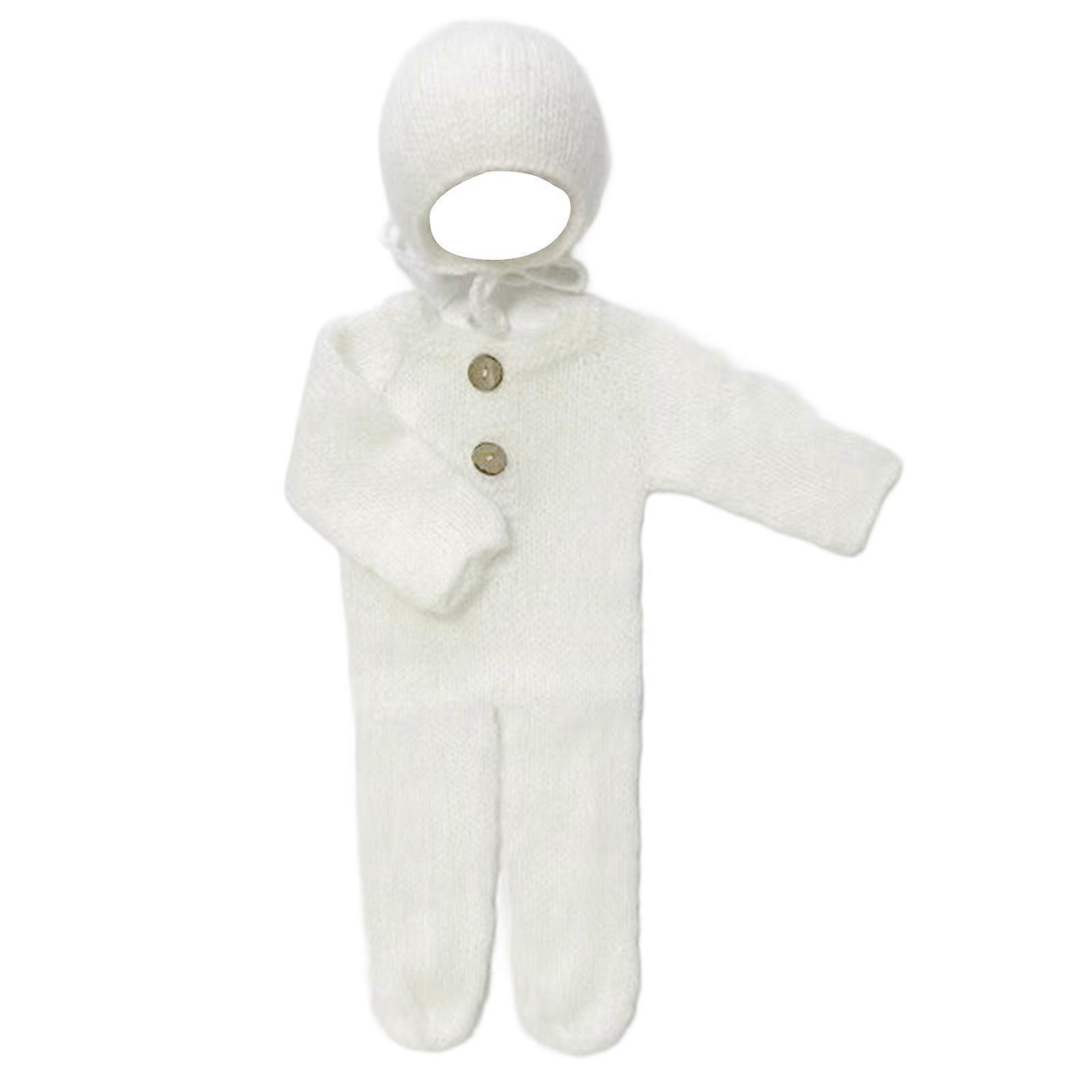 Lovely Baby Photography Props Set Knitted Jumpsuit with Hat for Newborns Gentle on Sensitive Skin for Celebrations White