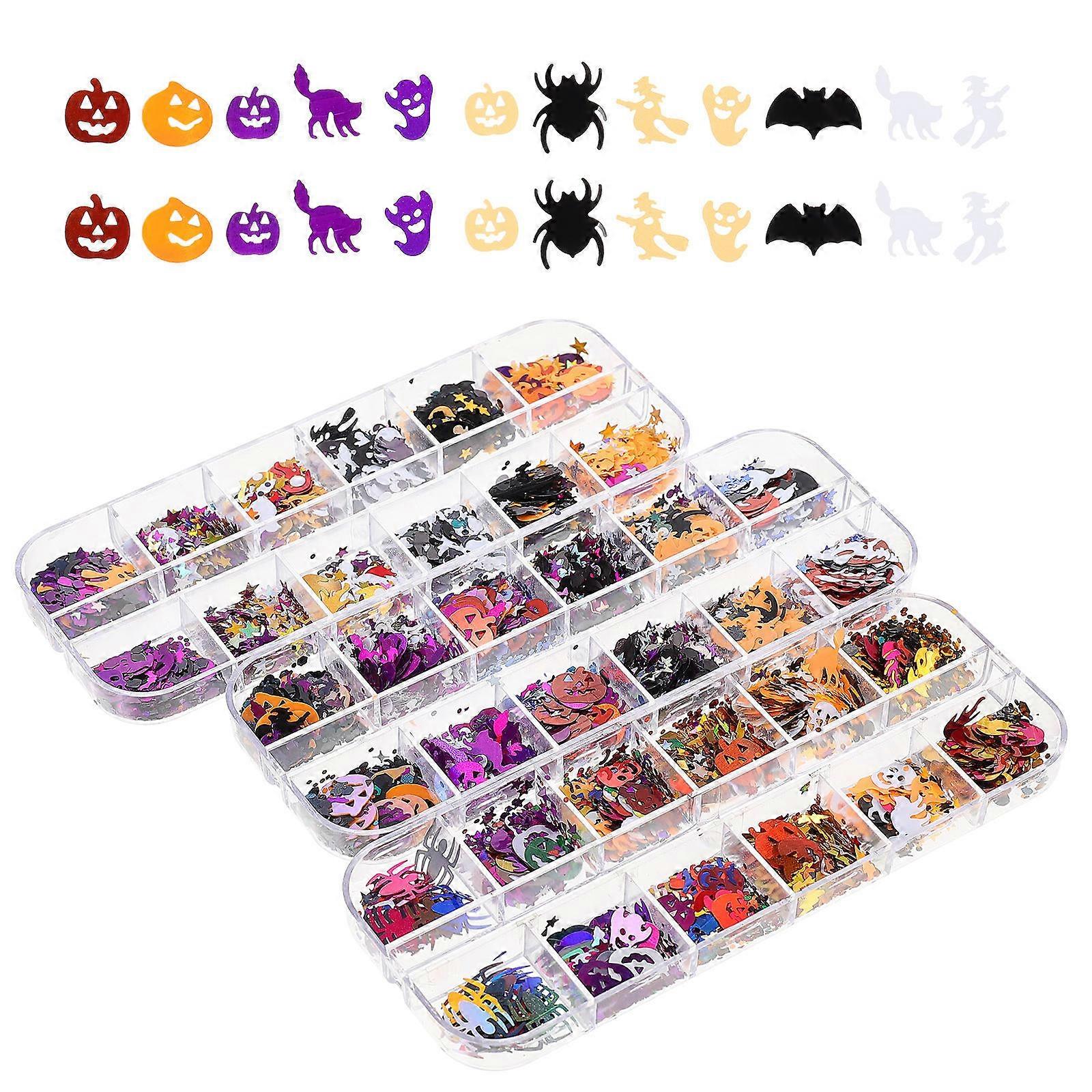 Nail Accessories Halloween Nail Art Pumpkin Skull Bat Spider Diy Nail Charm Pet Assorted Color Nail Art Patches 3 Sets
