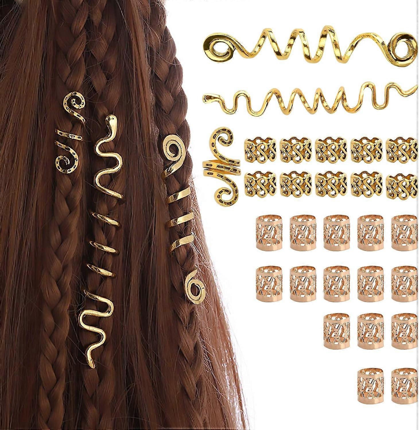 28 Pcs Hair Braid Accessories, Gold Alloy Hair Jewelry, 25 Pcs Hair Braid Cuffs and 3 Pcs Hair Spiral Clips for Braids