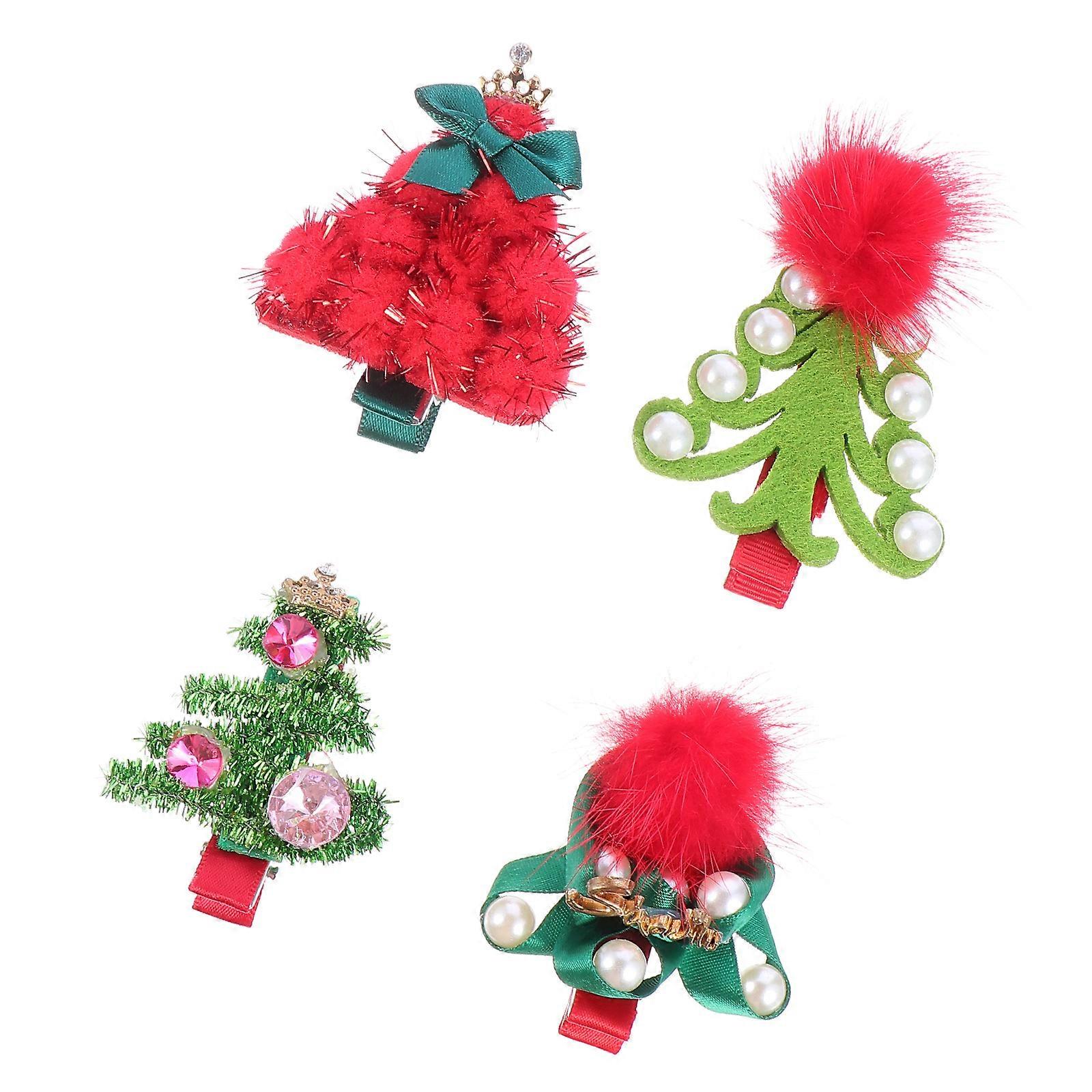 Girls Hair Accessories Christmas Theme Clips Fabric Material 4Pcs