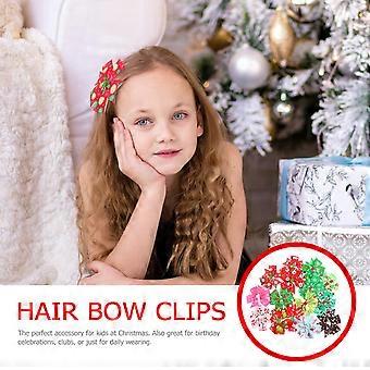 Christmas Hair Accessories Bow Knot Hairpins for Children Assorted Color Polyester Iron Material Reduce Friction 15Pcs