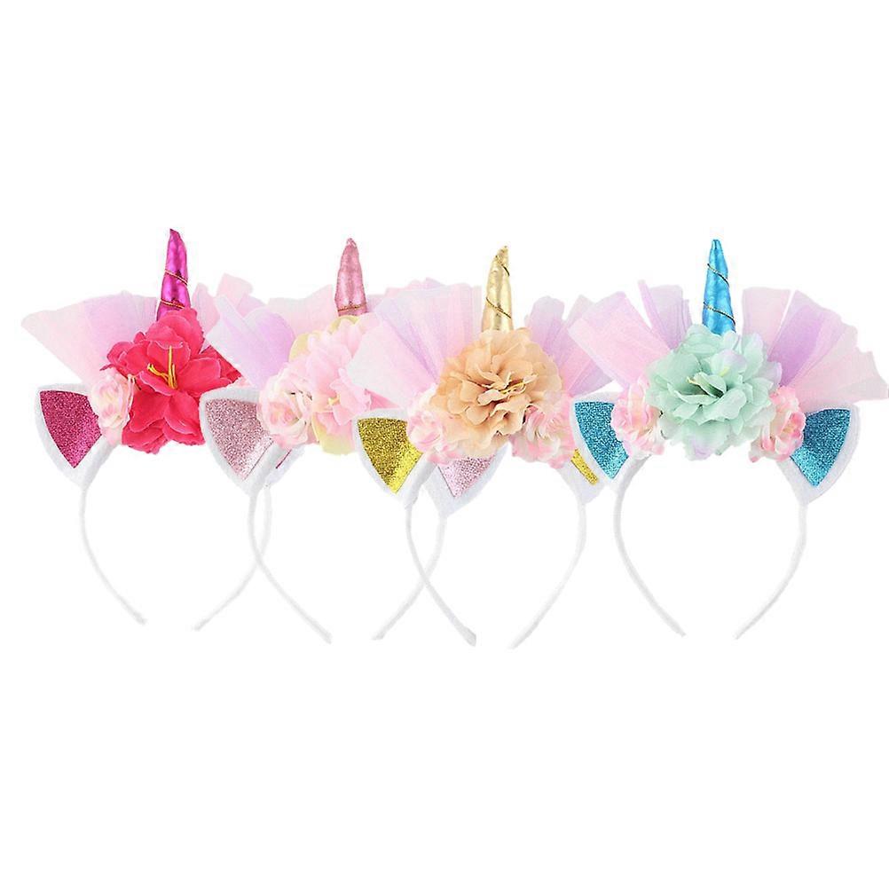 Kids Hair Accessories For Girls Unicorn Headband Festival Headwear Golden Color 4Pcs
