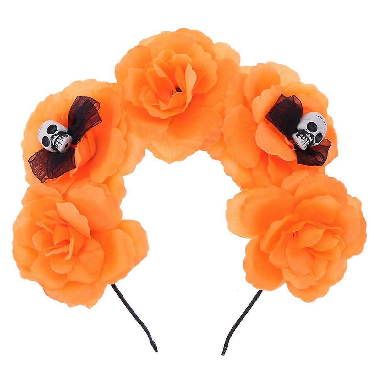 Halloween Hair Accessory Skull Flower Headband for Decoration 2Pcs Orange