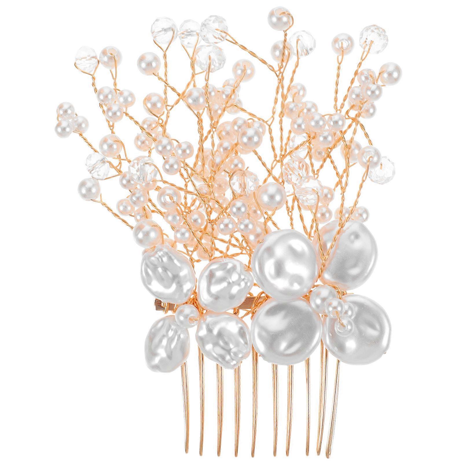 Delicate, attractive, elegant and fashionable wedding hair comb, highlight your appearance. A nice addition to your wedding dress, make your hair style look more charming. This hair comb with rhinestones and pearl decor, give your hairstyle unique charm and elegance. Features - ColorAssorted Color -Material:Pearl, crystal, metal - Size: 12.00X11.00X1.20cm/4.72X4.32X0.47in - Perfect for wedding, evening party, banquet, Christmas, new year party, birthday and other special occasions. - Perfect assembly of delicate design and crystal decor make the hair comb look more beautiful. - Suitable for most brides and bridesmaid to use, a perfect wedding hair accessory. - It presents a sparkly, stunning, elegant, chic, charming and eye-catching look, easily catching people's attention. - Easy to put on and create stunning hair styles. A good choice for engagement or wedding decor. Package list: 1 x Wedding Hair Comb