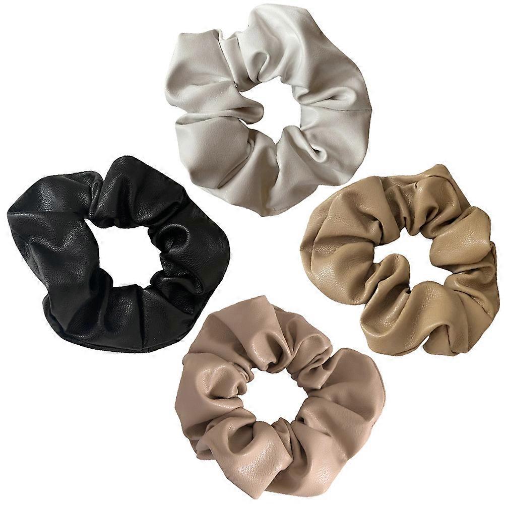 PU Hair Accessories 4Pcs Elastic Hair Ties for Women Ponytail Holders