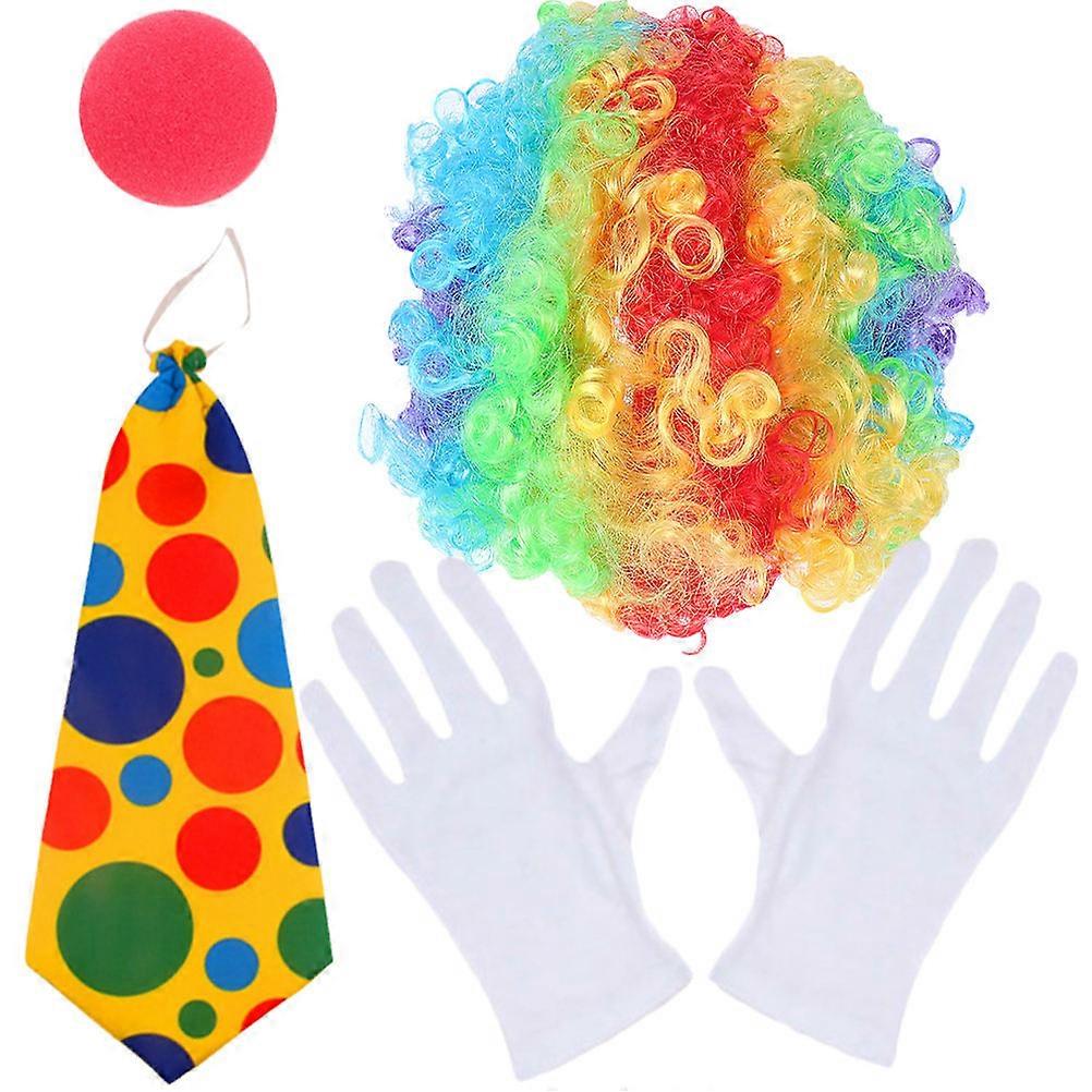 Carnival Festival Clown Costume Accessories Including Curly Wig Nose Neck Tie And Gloves For Kids And Adults 1 Set