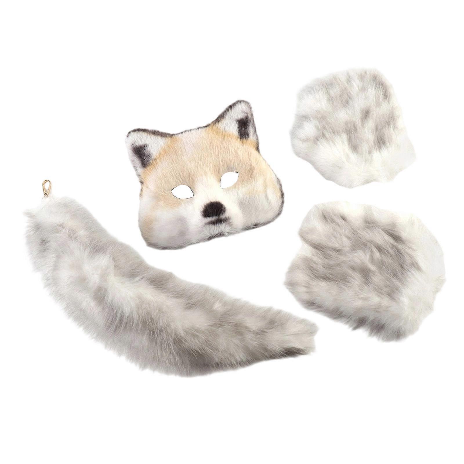 Foxes Costume Accessories Halloween Costume Cosplay Party Props Foxes Mask Cats Half Face Mask Foxes Tail Gloves Set White