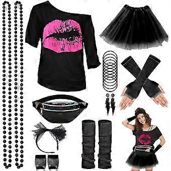 Costume Accessories , T-Shirt Tutu Fanny Pack Headband Earring Necklace Fishnet Gloves Legwarmers 80s Party Halloween outfit for Women 24PCS
