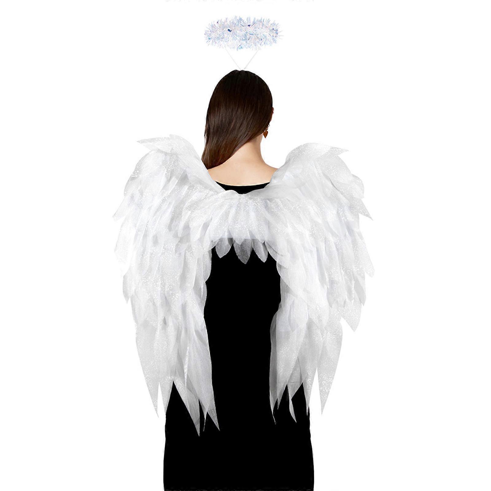 Angel Costume Accessory with Halos Headband Fairys Angel Wing Fairys Angel Wing for Halloween Cosplay Photograph Prop White Angel Set