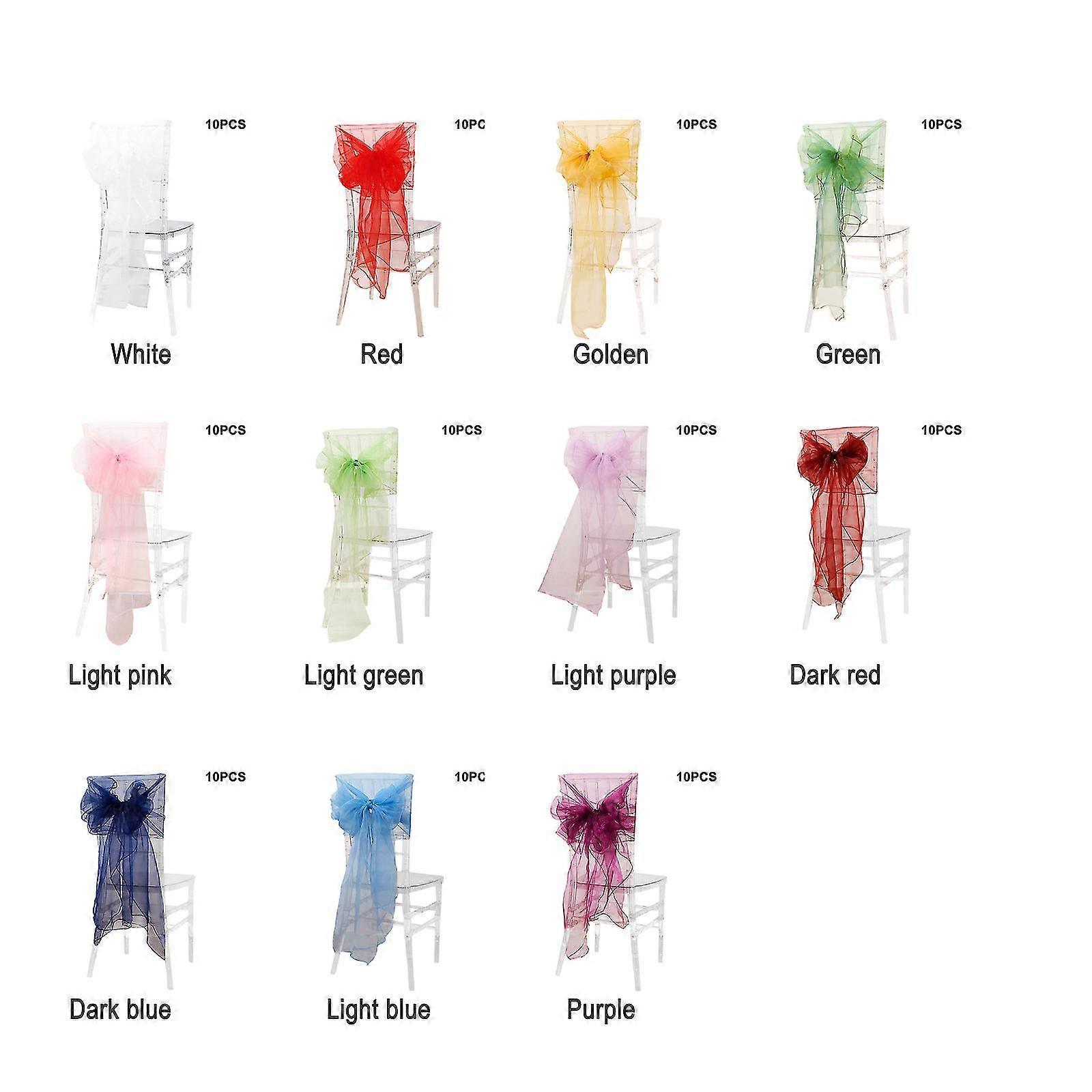 Wedding Chair Sashes - Elegant Decorative Bowknot Decoration For Hotel Party And Banquet - 10pcs White Organza Chair Bows