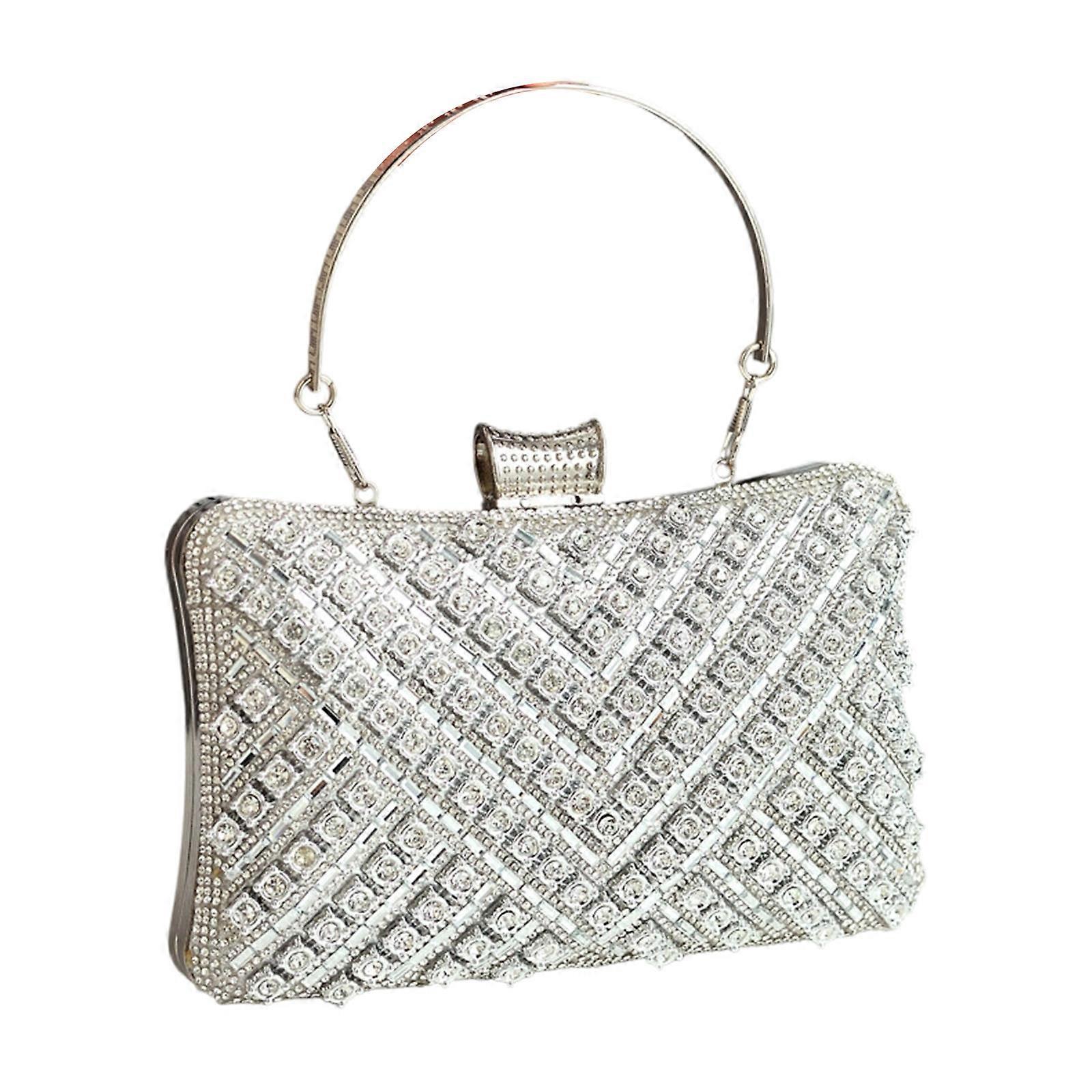Rhinestones Evening Purse Fashion Embroidery Work Functional Strap Option Shoulder Bag Handbag Wedding Prom Wear Silver