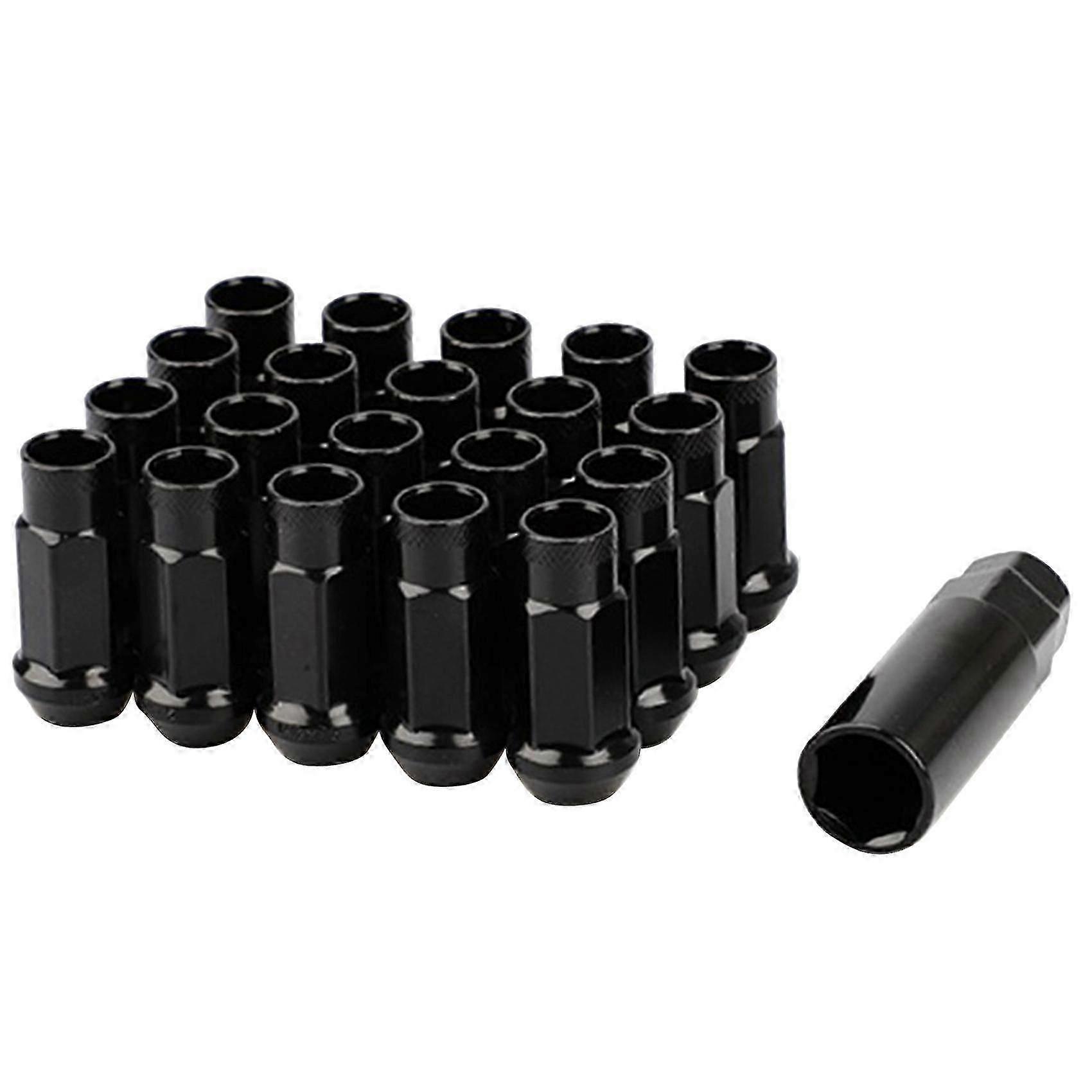 Lug Nut M12X1.5 Open Wheel Nut, Tapered Seat, 20 Lock Nuts Racing Nut and 1 Nut Socket Key (Black)