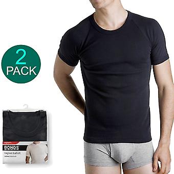 Bonds 2 Pack Crew Neck Raglan Blank Plain Basic Mens Black T‑shirt Tee Top M9372w