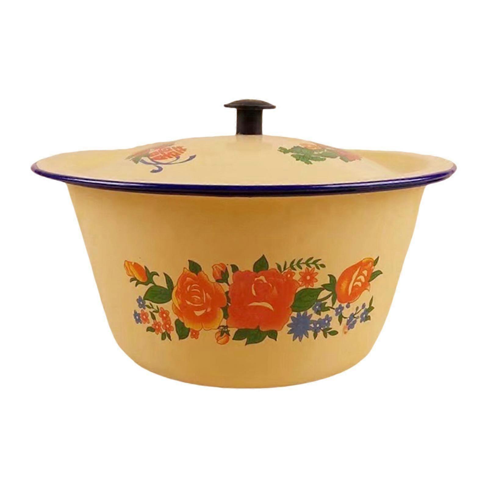 Enamel Basin with Lid Thickened Kitchen Supplies Multipurpose Lard Oil Basin 0.65L