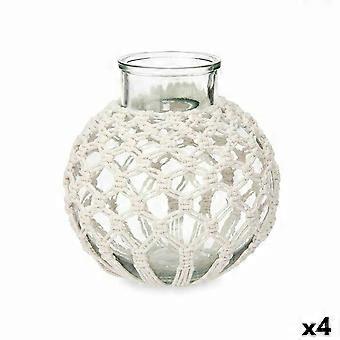 Vase Gift Decor White Transparent Cloth Glass Macrame 25 x 26,5 x 25 cm (4 Units)