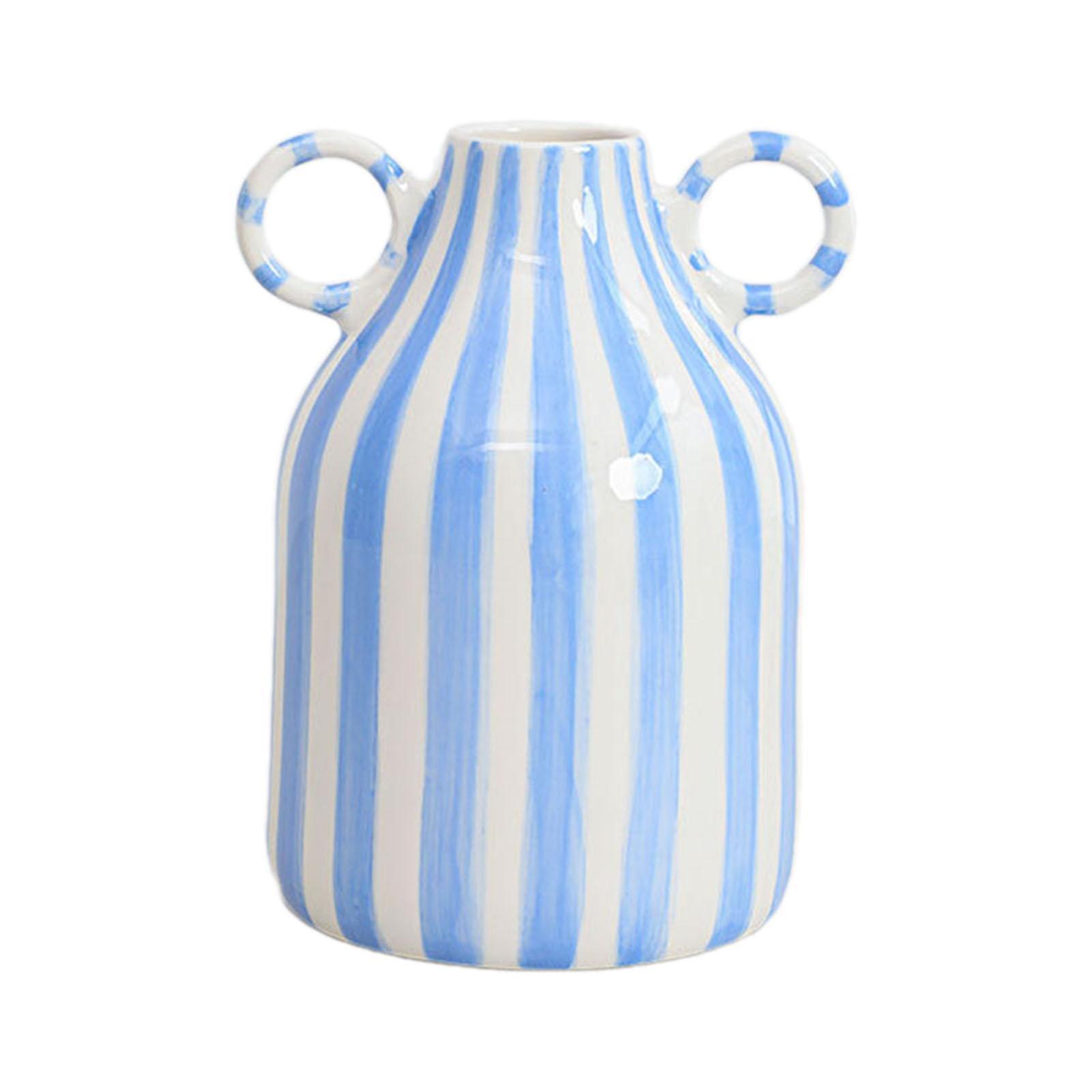 Decorative Flower Vase Photo Prop Porcelain Vase for Garden Entryway Farmhouse Blue White Stripes