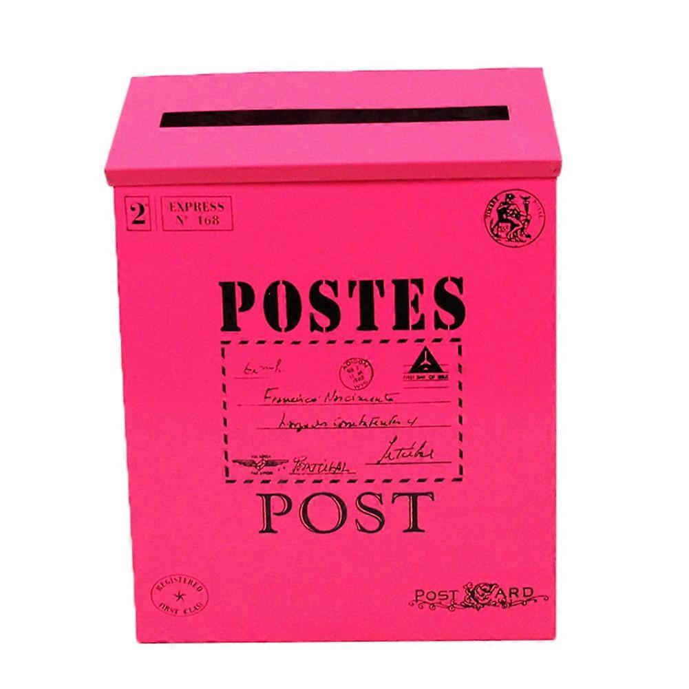 (Rose red)Vintage Wall Mounted Iron Mailbox Letter Post N