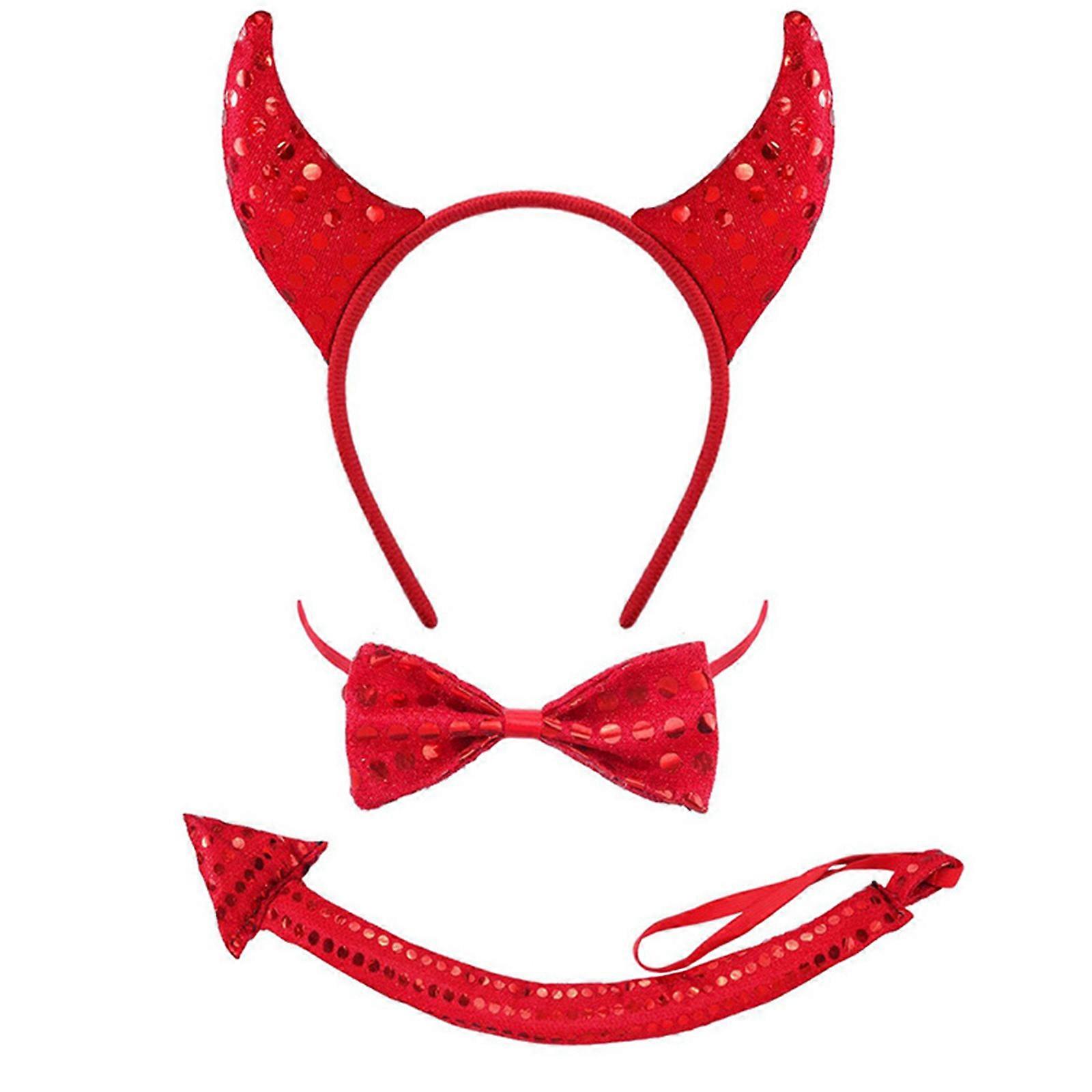 Red Sequins Animal Headbands Devil Hair Hoop and Collar Tail Cosplay Hairband for Kids Stage Halloween Accessories Red