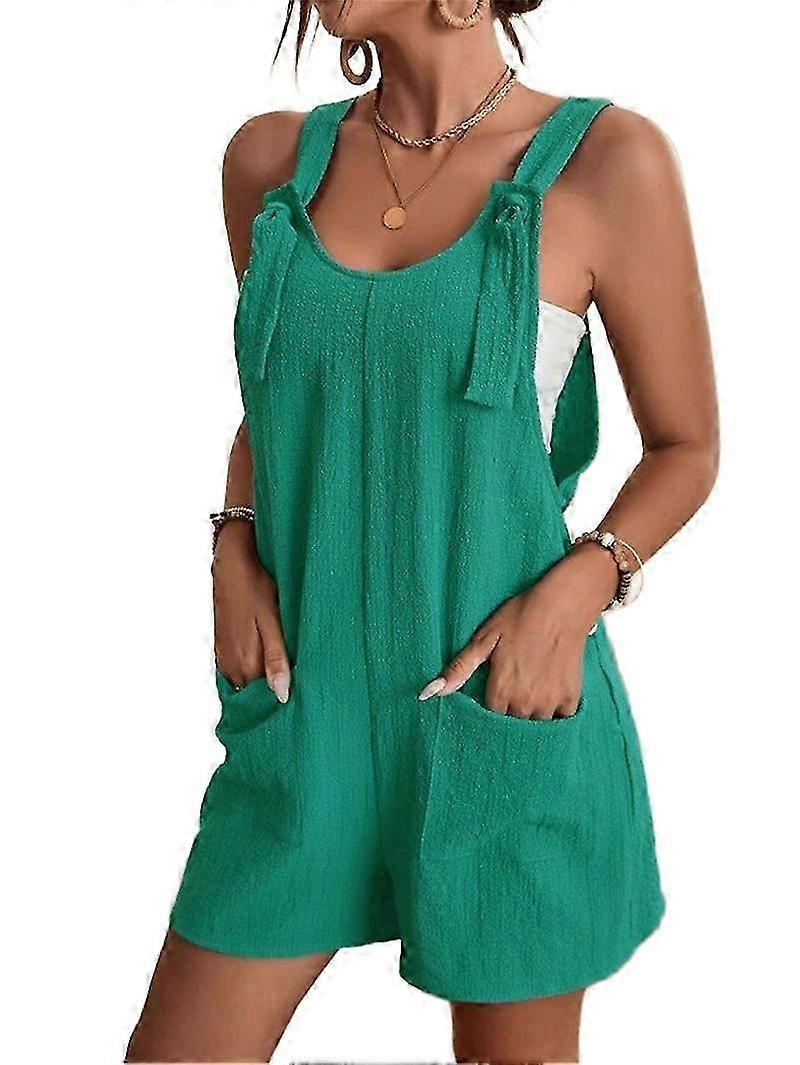 Women Jumpsuits Summer Adjustable Strap Knot Front Pockets Shorts Overalls Rompers Green 26s