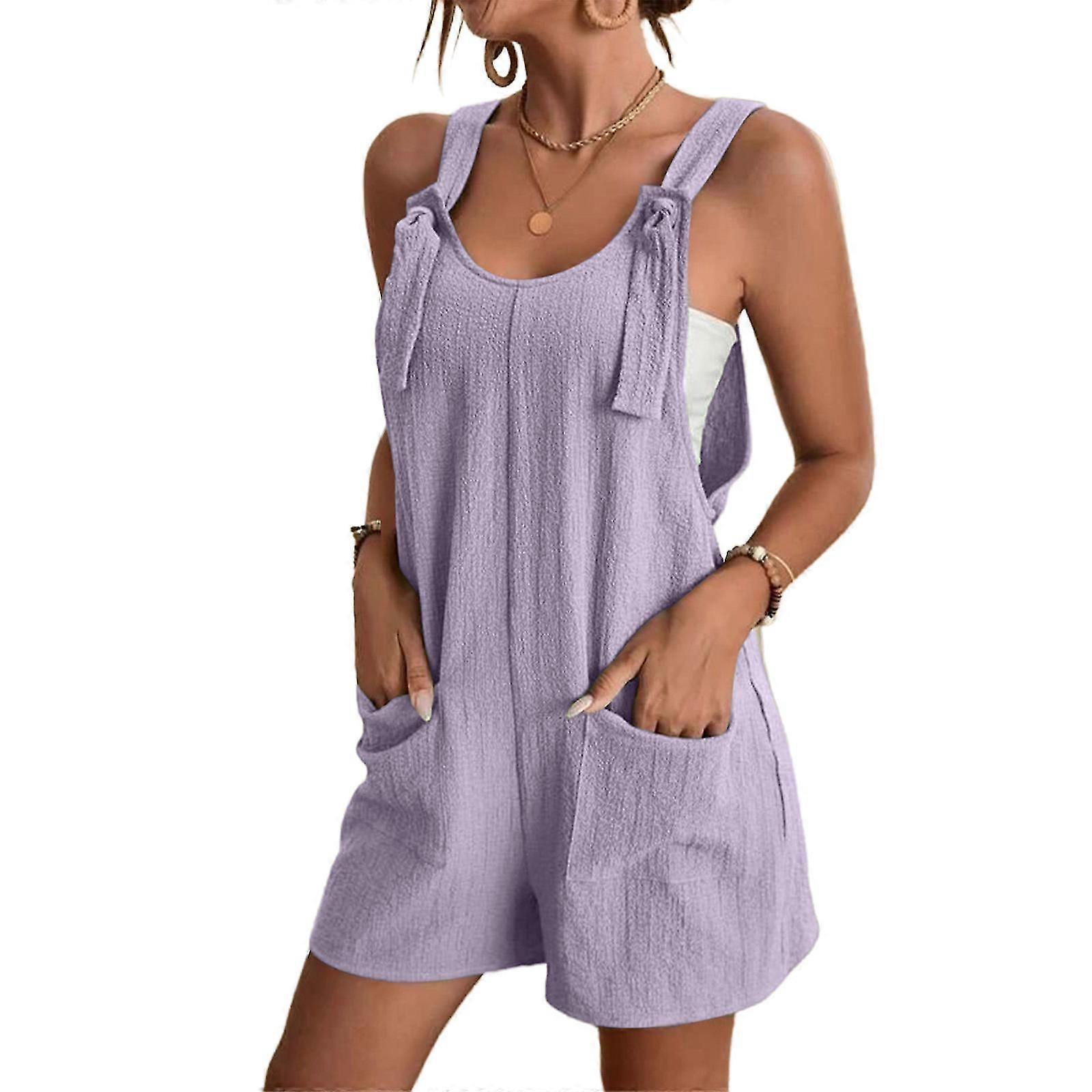 Women Jumpsuits Summer Adjustable Strap Knot Front Pockets Shorts Overalls Rompers Purple 26s