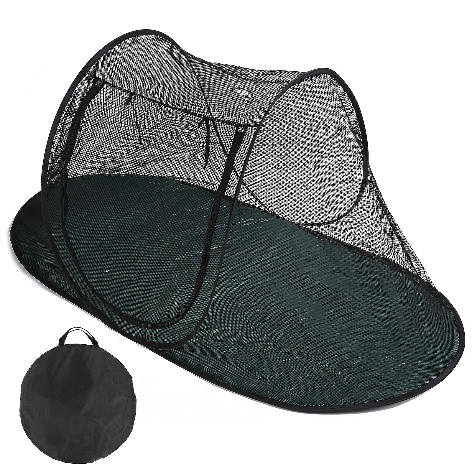 Pet Camping Tent Outdoor Playpens Cage Portable Breathable Pig Dogs Playpens HouseXBD176 Oval Tent with Black Net on Green Background 189x90x78cm