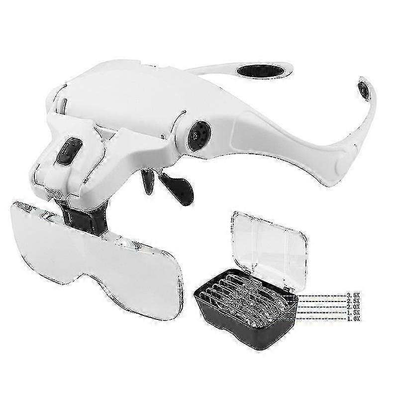 Hands-free Magnifying Headset with 2 LED Lights and 5 Detachable Lenses (1.0x - 3.5x) for XXF