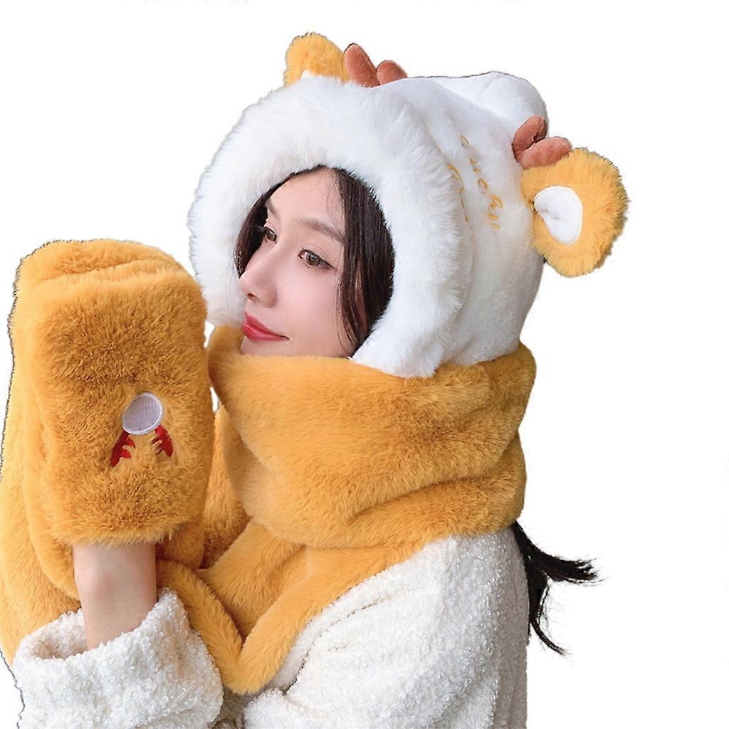 Elk Ears Beanie Hat Scarf Mitten Ear Protection Sports for Skiing Riding Hiking
