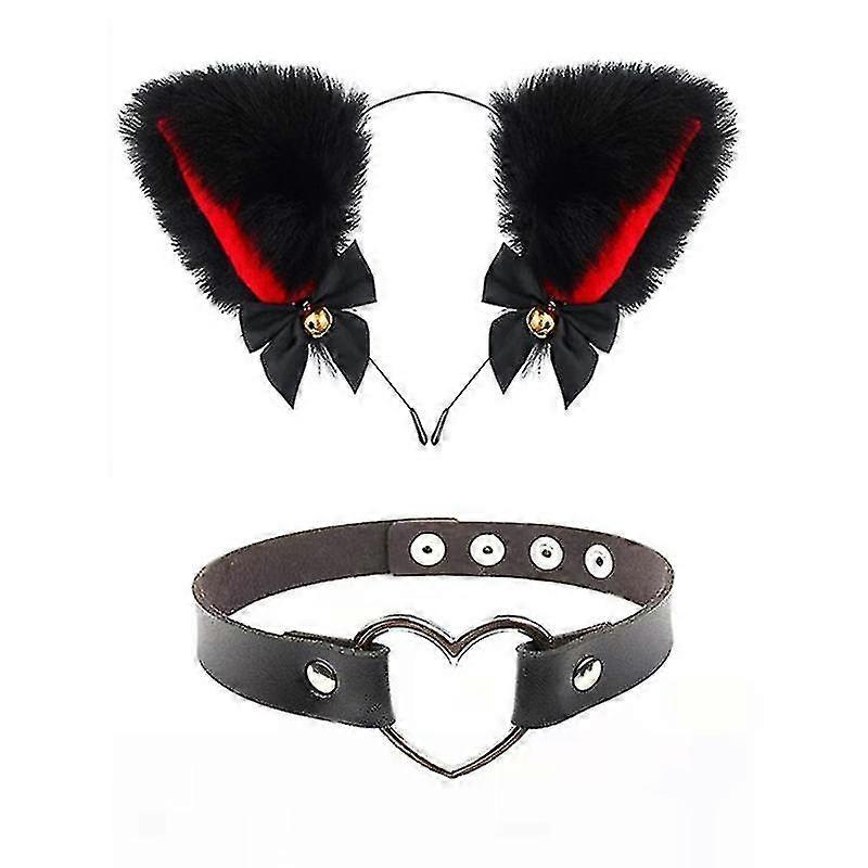 Cat Ears Headband With Bell Heart Necklace Set Cosplay Headpiece Accessories