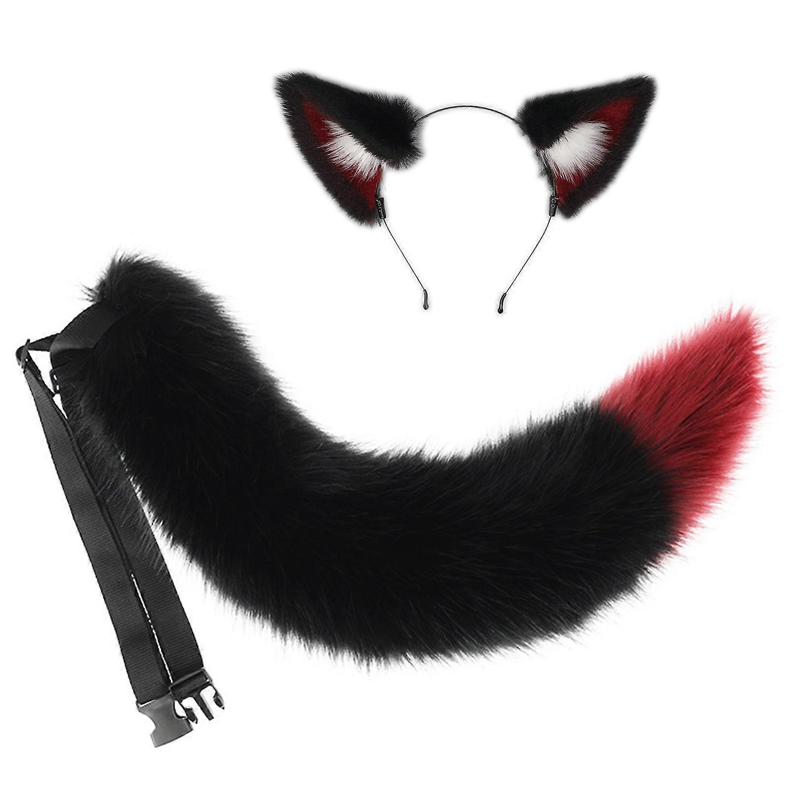 Fox-Ears Headwear Anime Beast Tail Plush Wolf Ear Headband Fancy-Party Favor-Fox Tail for Halloween Festival Cosplay set