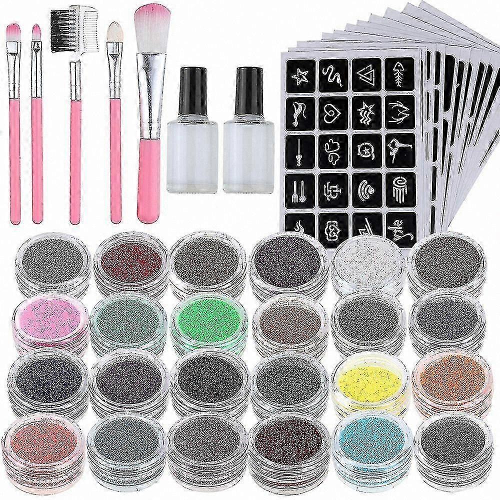 Shimmer Body Art Collection, 24 Vibrant Glitter Tubes with 120 Design Templates, 2 Adhesives & 5 Applicators, Fun Temporary Tattoos for Kids & Teens